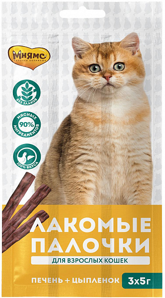 Лакомство для кошек Мнямс лакомые палочки с цыпленком и печень 5г 3шт
