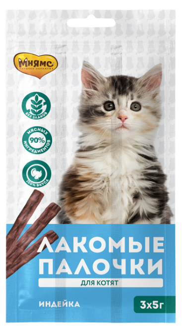 Лакомство для КОТЯТ Мнямс лакомые палочки с индейкой 3г 3шт