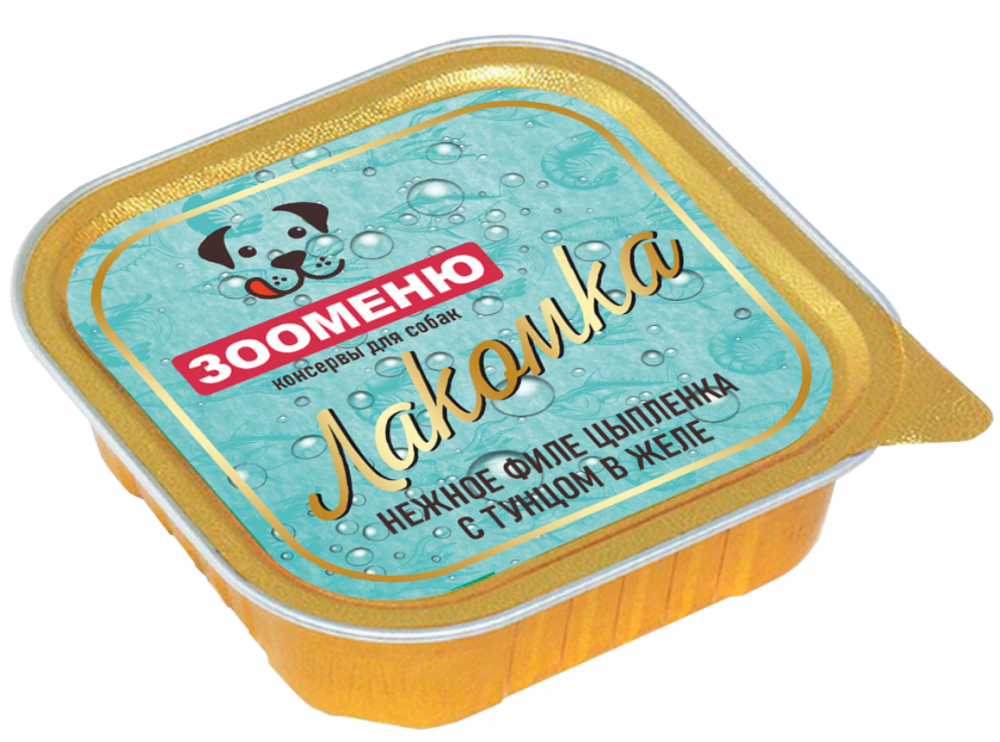 Консервы Зооменю Лакомка "Нежное филе цыпленка с тунцом в желе" для собак 100 г