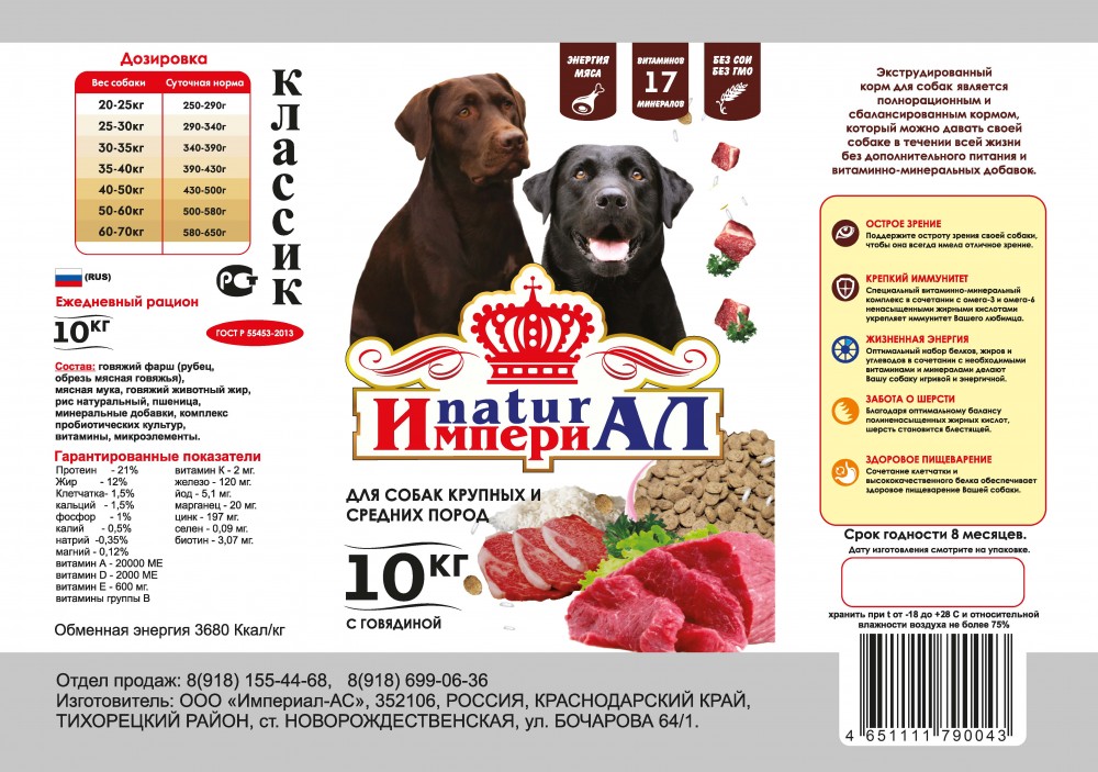Корм Империал РАЗВЕС КЛАССИК Говядина+рубец для собак 1 кг