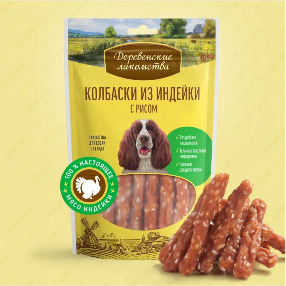 Лакомства для собак Деревенские лакомства Колбаски из индейки с рисом 85 г