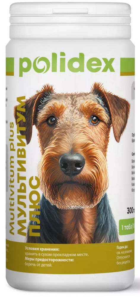 Polidex Multivitum plus поливитаминно-минеральный комплекс для собак, 300 таб. (1 таб. на 10 кг массы тела), 338 г