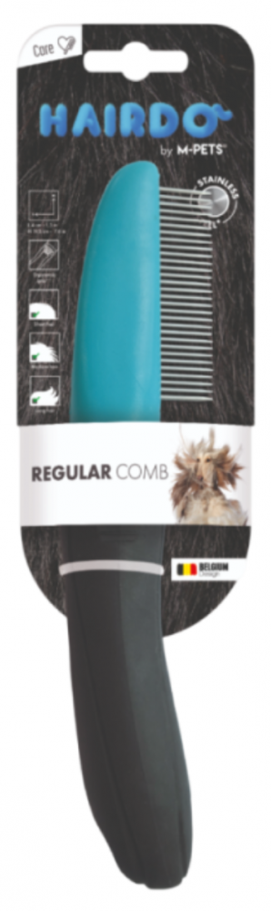Расческа для собак M-PETS c частыми зубцами. Подходит для тщательного расчесывания. Используйте расческу для удаления отмершей и линяющей шерсти длинношерстных собак, а так же при расчесывании колтунов и шерсти на лапах. Зубчики расположены перпендикулярно к рукоятке, что значительно облегчает вычесывание. Регулярное расчесывание предотвратит спутывание шерсти и образование колтунов. Возможно использование совместно со щеткой - пуходеркой. Расческа отличается удобной, прорезиненной, эргономичной ручкой. Подходит для всех пород и типов шерсти. Размер: 22 см. Материал: ABS, TPR, нержавеющая сталь. Цвет: черный с синим. Подробнее