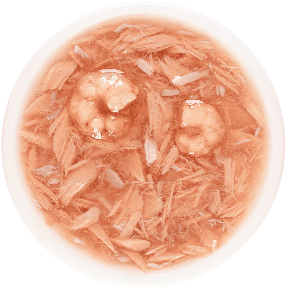 Состав: бульон из тунца — 71,3%, тунец — 20%, креветка — 4%, краб (сурими) — 4%, желирующая добавка, экстракт тунца, витамин Е, таурин.nПищевая ценность, %: протеин — 10,5; жир — 0,2; клетчатка — 1; зола — 1,5; влажность — 89;nЭнергетическая ценность на 100 г — 30,8 ккал.n