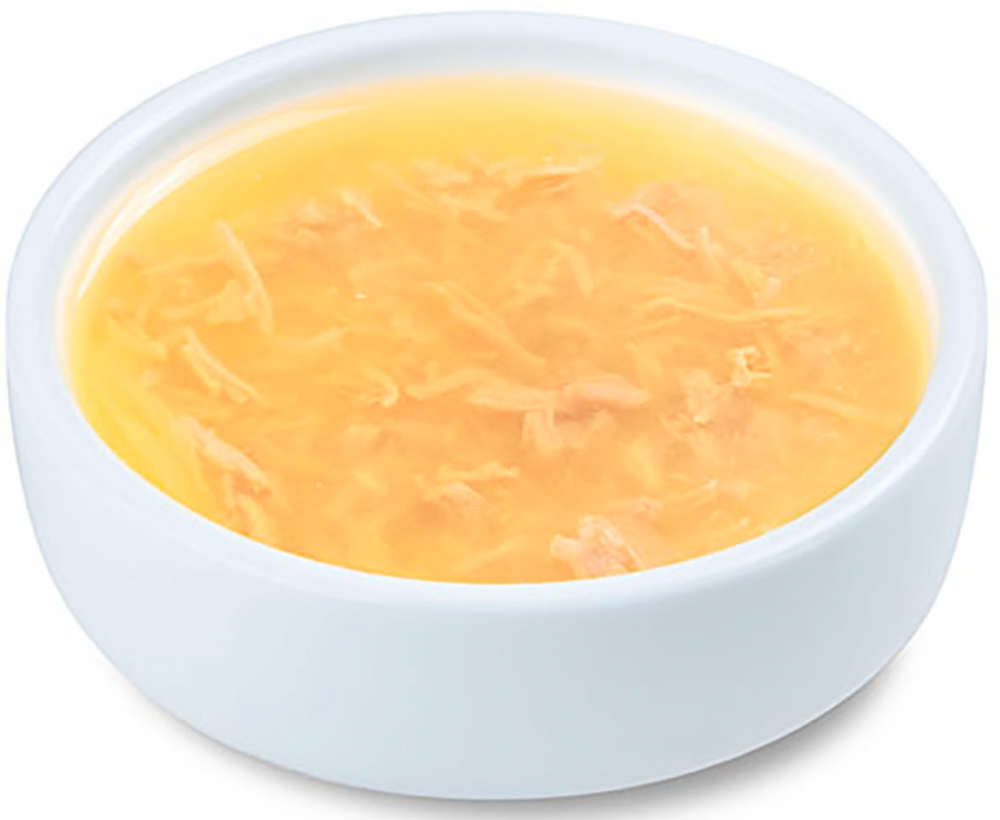 Состав: Утиный бульон, утиная грудка, лососевое масло, яичный белок, морские водоросли, гуаровая камедь, крахмал тапиоки, карбонат кальция, таурин, соль, глицин, витамин Е. Питательная ценность в 100 г (Средние Значения): сырой белок 6,5%, сырой жир 0,1%, сырая клетчатка 1,5%, сырая зола 1,5%, влага 92,0%.n