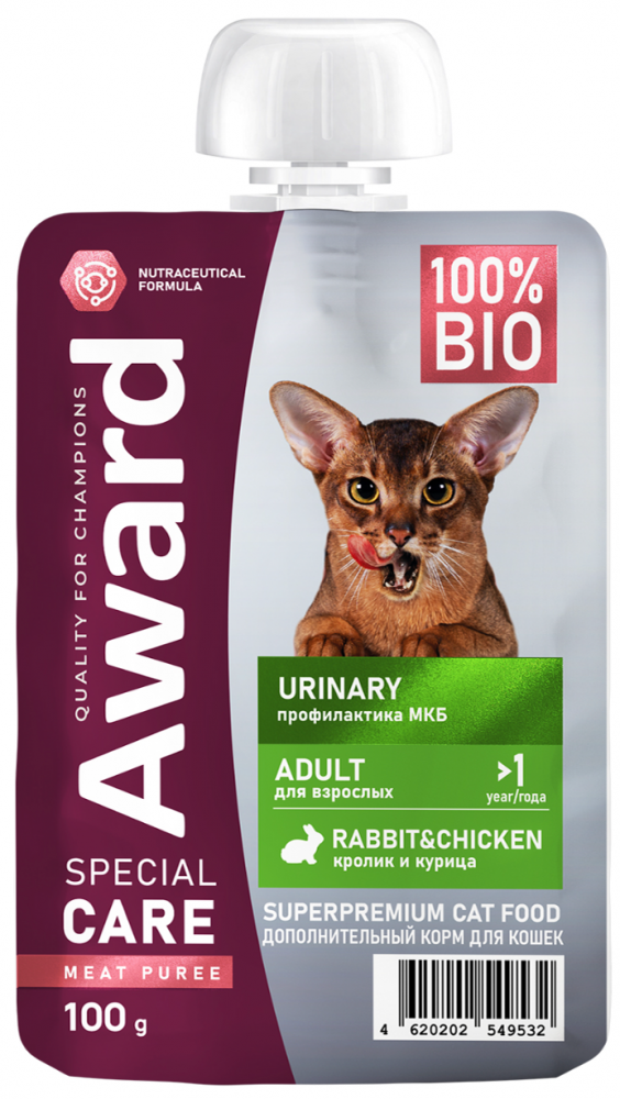 Консерва AWARD SPECIAL CARE Active longevity "мясное пюре" для пожилых кошек старше 7 лет для активного долголетия из курицы с говядиной 100г