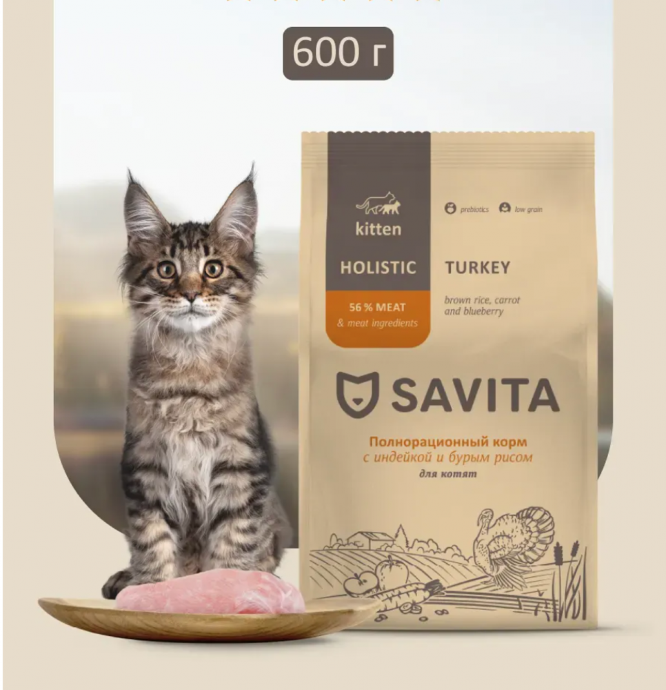 Сухой корм Savita для КОТЯТ с индейкой и бурым рисом