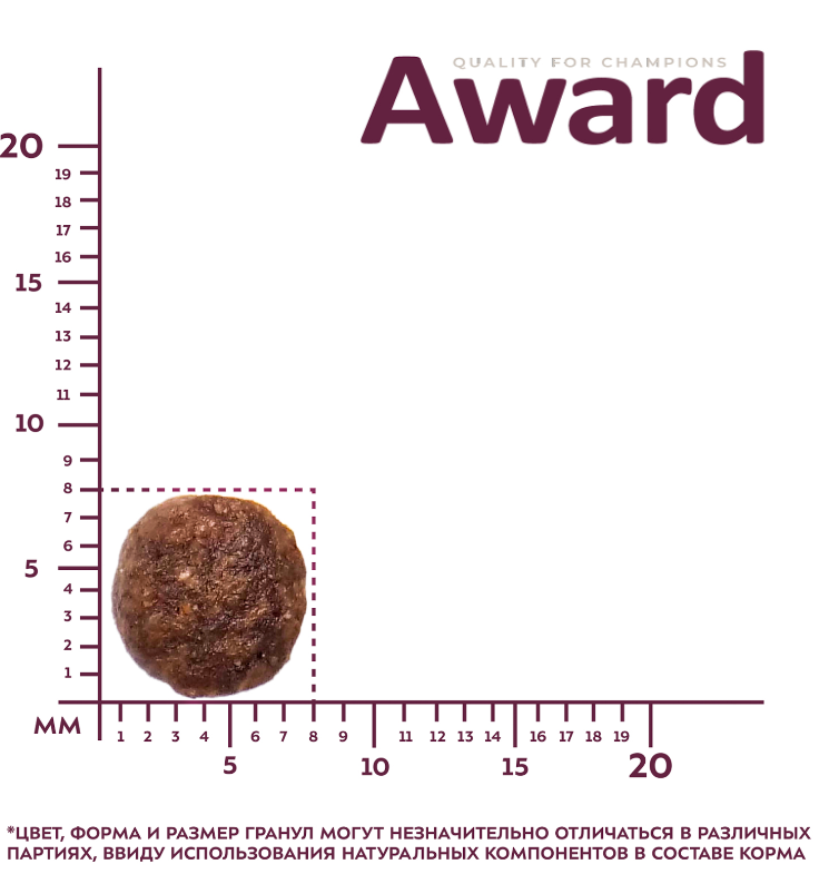Добавки на 1кг: таурин 0,22%, L-карнитин 150 мг, Омега-3 - 0,32%, Омега-6 - 2,25%.