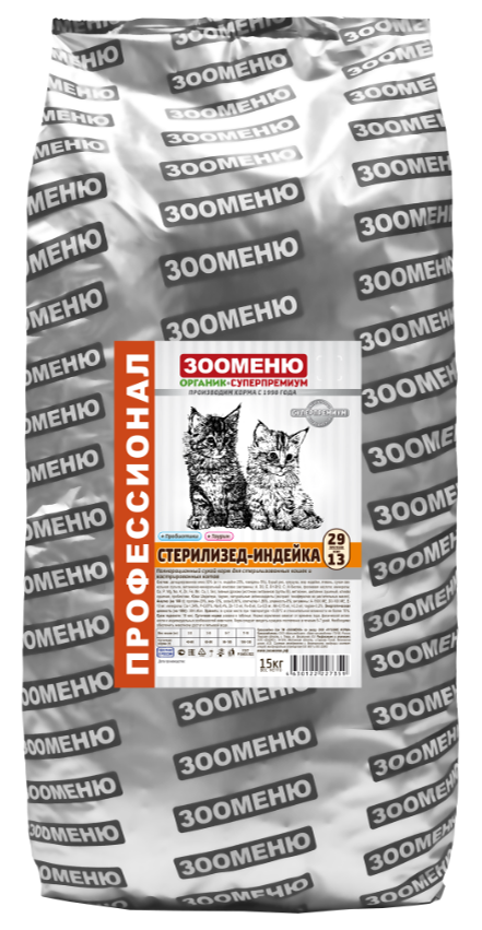 Корм сухой для кошек Зооменю для стерилизованных с индейкой "Стерилизед"