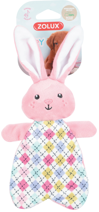 Zolux Игрушка Розовый зайка для щенков, шуршащая, с пищалкой, полиэстер, полиэтилен, 23 см
