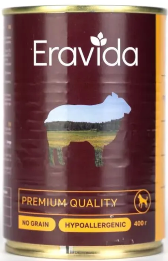Консерва Эравида Ягненок: ФАРШ+КУСОЧКИ 400 г для собак