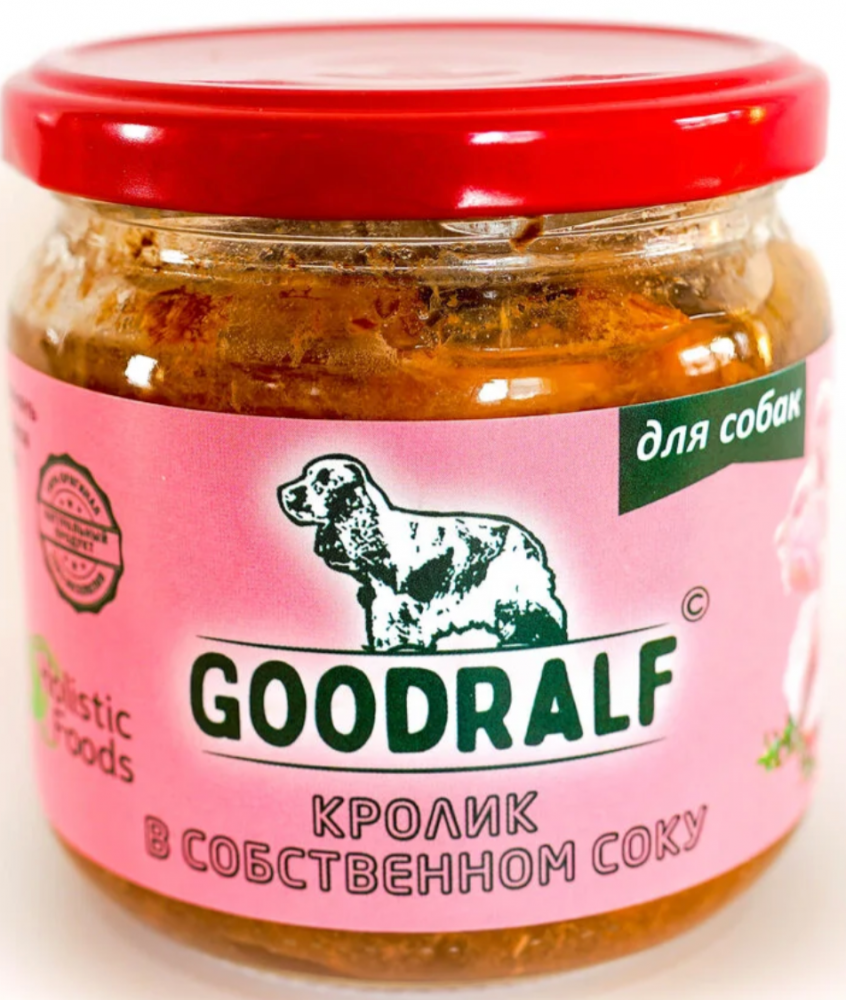 Влажный корм ПРЕМИУМ ГудРальф Кролик в собственном соку стеклянная банка 340 гр