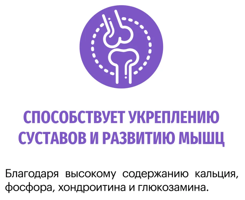 Способствует укреплению суставов и поддержанию здоровья костей Высокое содержание: кальция, фосфора, хондроитина и глюкозамина - способствует поддержанию здоровья костей и суставов щенков Специально подобранные питательные вещества, минеральные элементы и витамины Способствуют улучшению работы пищеварительной системы, что позволяет вашему щенку расти сильным, активным и здоровым. Способствует поддержанию здоровья иммунной системы щенка Сбалансированное содержание пребиотиков, а также комплекс витаминов и минералов способствуют поддержанию здоровья иммунной системы. Состав Дегидрированное мясо (в т.ч. индейка), цельные злаки, животный жир (в т.ч. лососевый, консервированный витамином E), растительная клетчатка, высокоусвояемый растительный белок, гидролизованные мясные белки, пивные дрожжи (источник маннанолигосахаридов), витаминно-минеральный комплекс, Юкка Шидигера, морская капуста, пробиотики (Bacillus subtilis, Bacillus licheniformis), сушеное яблоко. Cохранено витамином С и природным токоферолом (источник натурального витамина Е). Пищевая ценность Протеин - 30%, жир - 18%, влажность - не более 9%, зола - 7,5%, омега-6 - 2,75%, клетчатка - 2,53%, лизин - 1,7%, кальций - 1,3%, фосфор - 0,9%, метионин и цистин - 0,8%, калий - 0,6%, натрий - 0,3%, омега-3 - 0,25%, триптофан - 0,2%. Витамины и минералы Витамин А - 15500 МЕ, витамин D3 - 1500 МЕ, витамин Е - 300 МЕ, витамины группы В (В1 - 3 мг, В2 - 4 мг, В3 - 15 мг, В4 - 1200 мг, В5 - 15 мг, В6 - 4 мг, В7 - 1 мг, В9 - 2 мг, В12 - 0,07 мг), цинк - 102 мг, витамин С - 100 мг, железо - 57 мг, марганец - 15 мг, медь - 10,5 мг, йод - 1,55 мг, селен - 0,145 мг. Энергетическая ценность 3940 ккал/кг Подробнее