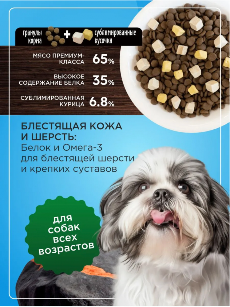 Корм Paddy Time беззерновой: 2 вида гранул- Утка с лососем с сублимированным мясом утки для собак 2 кг