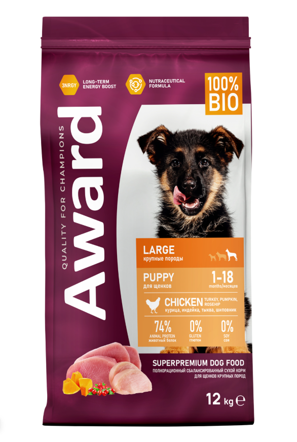 Сухой корм AWARD ЩЕНКИ МАКСИ с курицей и индейкой тыква шиповник 12кг