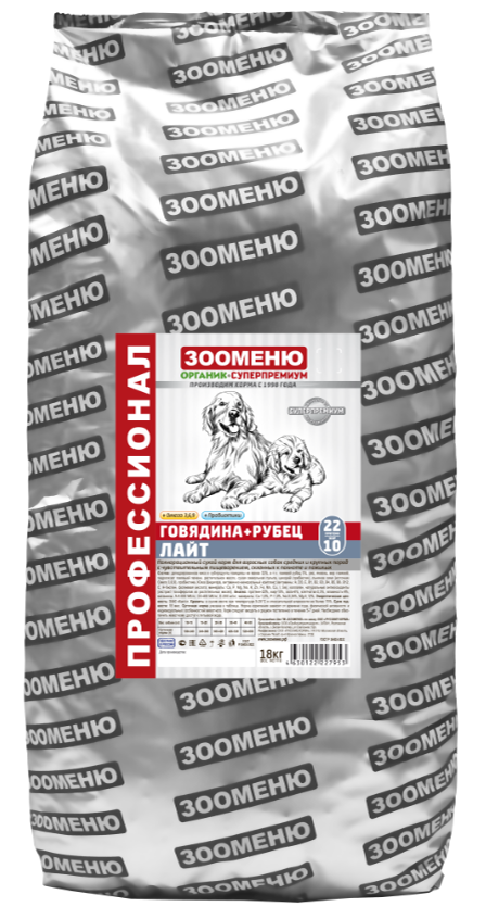 Корм сухой Зооменю Говядина+рубец "ЛАЙТ" для собак