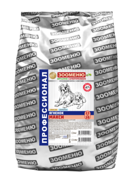 Корм Зооменю МАКСИ для собак крупных пород с мясом ягненка