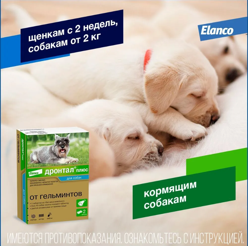 Дронтал плюс, таблетки от глистов и простейших для собак, – препарат от компании Elanco, помогающий избавить вашего питомца от самых распространенных внутренних паразитов – круглых и ленточных гельминтов, а также от простейших – лямблий. Дронтал плюс выпускается в виде косточки со вкусом мяса с удобной дозировкой – 1 таблетка на 10 кг массы животного, подходит для собак с 2 кг веса. Разрешен всем породам собак. Производится в Германии. Подробнее
