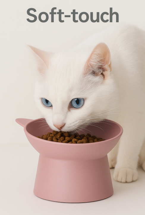 Миска расположена под углом 15 граусов для комфортного положения позвоночника питомца во время приёма пищи.