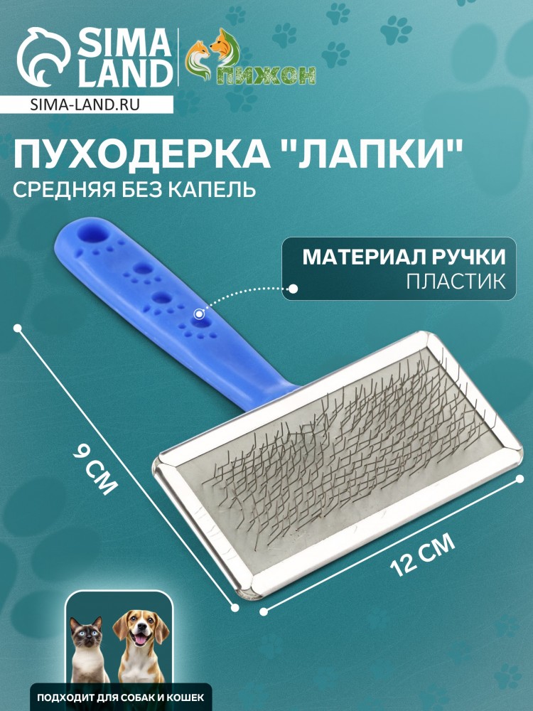 Пуходёрка «Лапки» средняя, 9×12 см, без капель, синяя